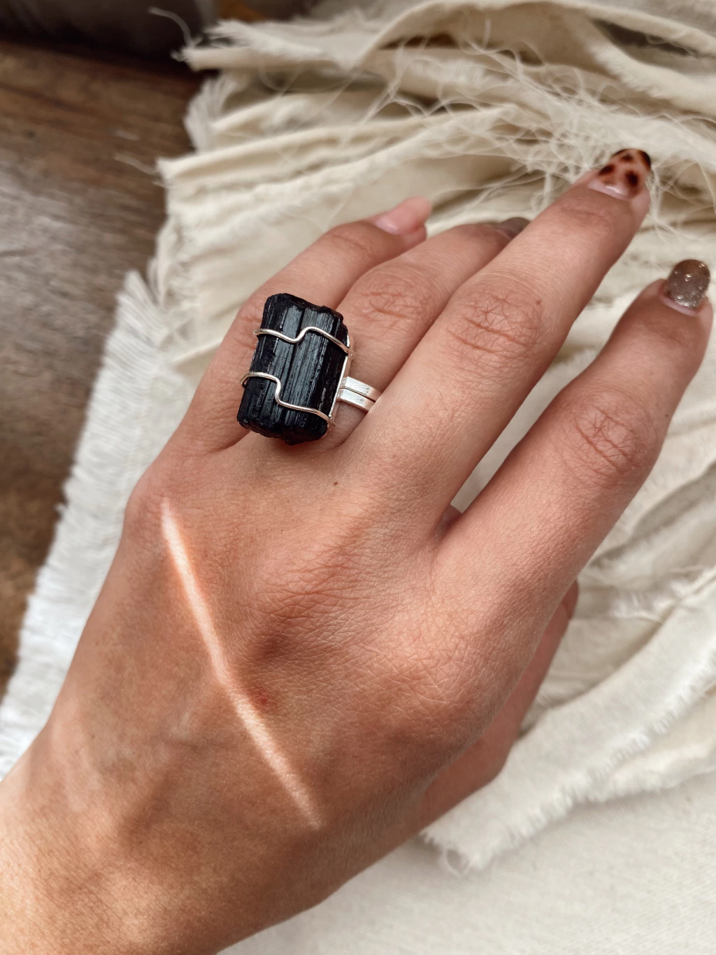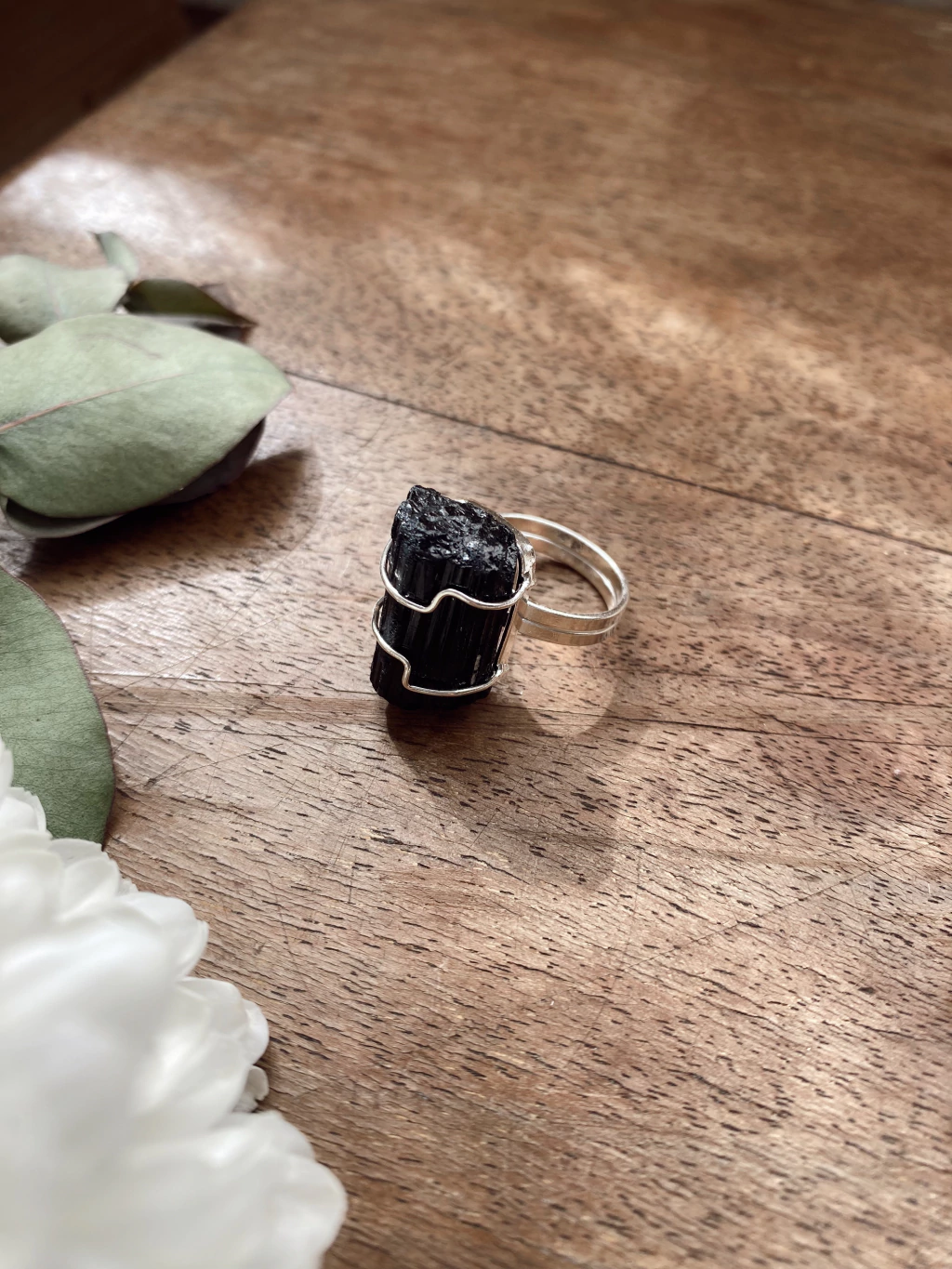 Este anillito esta realizado con piedra natural en bruto de Turmalina, la misma esta engarzada a la base del anillo que es con baño de plata. Y lo mas comodo de todo... es regulable !